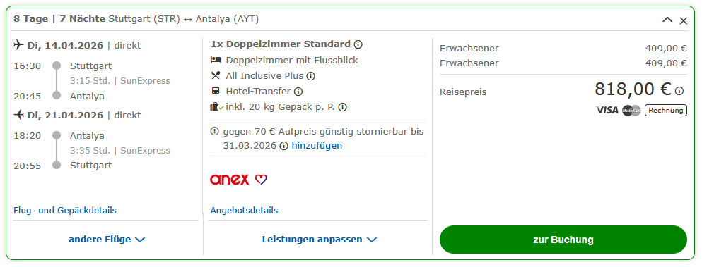 | Reisezeitraum | 📅 ab April z.B. 14.04.26 – 21.04.26 |