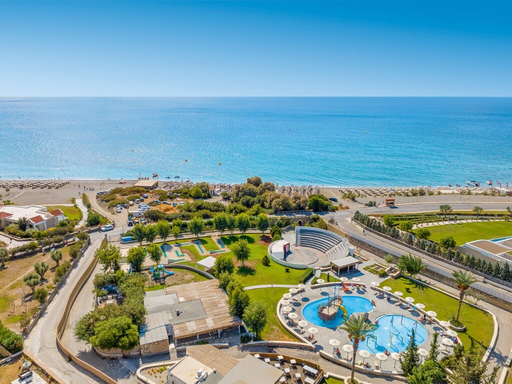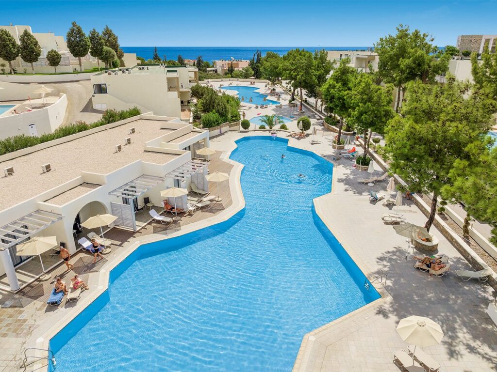 Das weitläufige Resort liegt an der sonnigen Südküste der Insel und bietet alles, was es für einen gelungenen Sommerurlaub braucht: mehrere Pools, eine gepflegte Anlage und direkte Strandlage für entspannte Badetage. 🌊🏝️