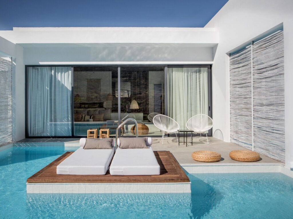 Das besondere hier? Euer Zimmer ist mit einem direkten Poolzugang ausgestattet und Ihr könnt direkt von Eurem Bett aus ins Pool springen – ein Traum, oder?! 💦 Wer trotzdem ans Meer und an den Strand möchte, erreicht diesen nach einem kurzen Spaziergang, in 700 m Entfernung.