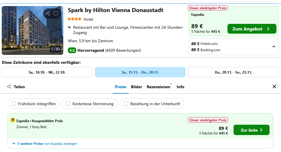Das leckere Frühstück ist für Euch im Preis inbegriffen. Mit der U-Bahn direkt vor der Tür erreicht Ihr den Stephansplatz nach nur 15 Minuten und Wiens berühmteste Sehenswürdigkeiten im Handumdrehen. Das Shopping Center Donauzentrum befindet sich direkt gegenüber. Feiert die besinnliche Jahreszeit, entdeckt den Zauber von Wien und genießt unvergessliche Momente. 🥰✨